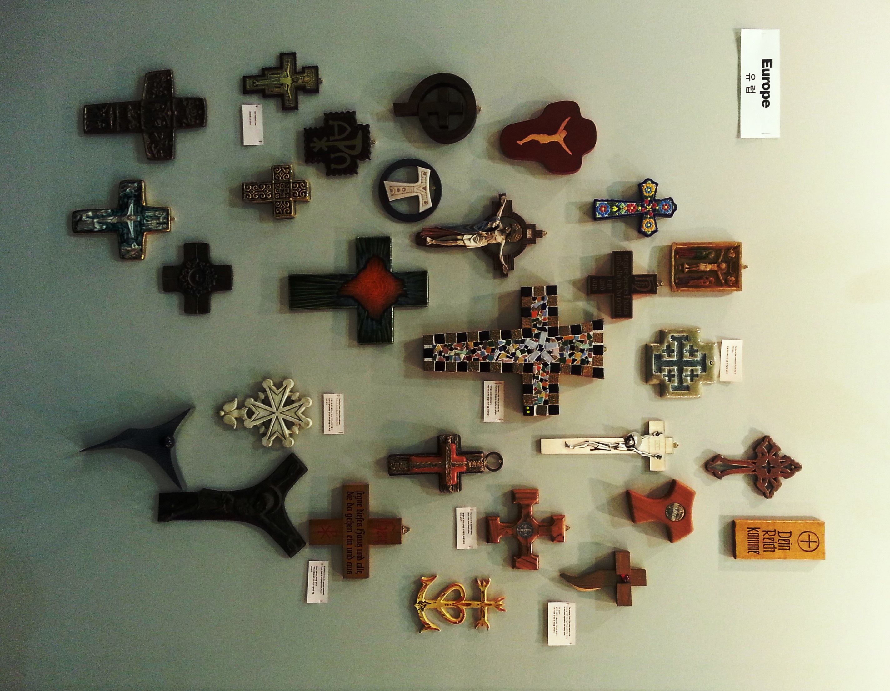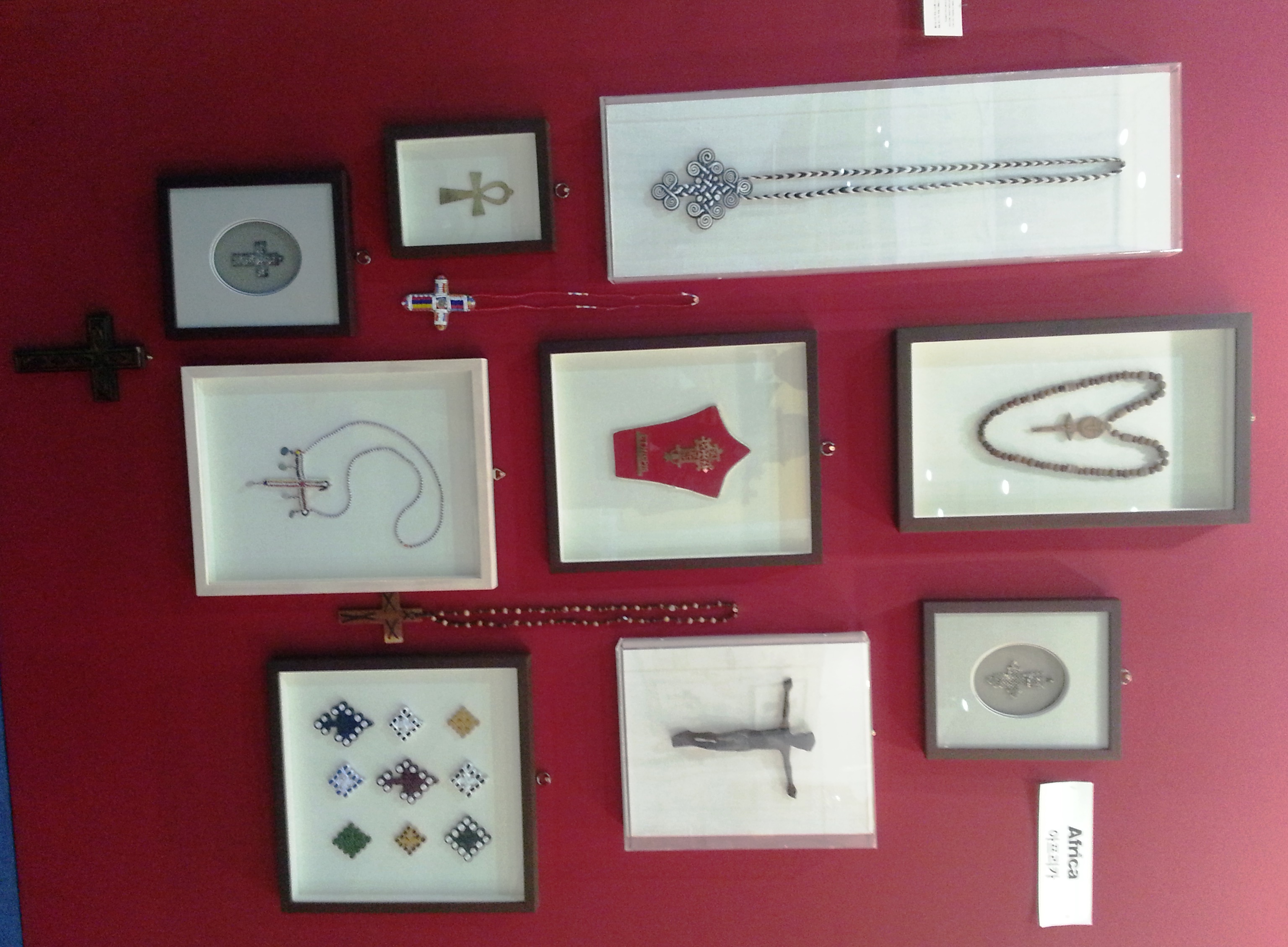 I was impressed with the collection of crosses on display. This I have titled “Europe’s Cross-ing” playing with idea of Europe’s colonial hegemony in their so-called “new world”. I wondered what sort of cross was stuck on the flag that was planted on the shores of the Caribbean. I have juxtaposed the collection I have titled Africa’s Crosses – much of which is still borne today, though hope is elicited from the very cross….